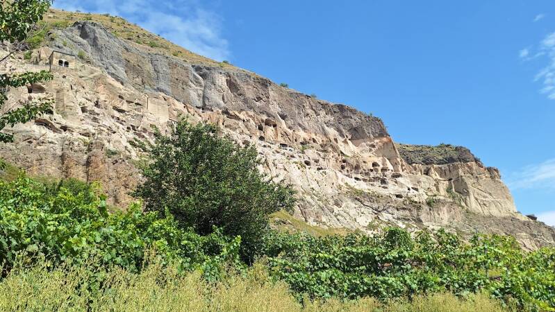 La vallée enchantée avec en contrebas, beaucoup beaucoup plus bas, VARDZIA, un village troglodyte du 12° siècle que l'on aperçoit dans toute sa longueur sur toute la falaise où tout à été fait à la main de l'homme !