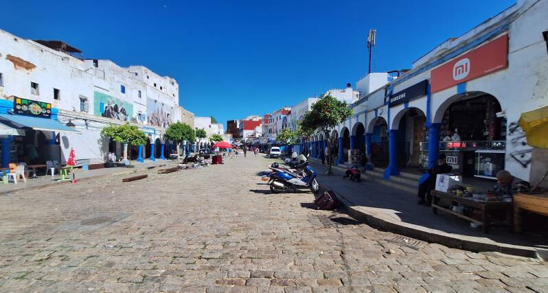 Le "street art" est partout et ce sont des "auteurs" du monde entier (en particulier du Japon) qui viennent pour apposer leur dessins . La ville qui est devenu largement "étrangère"(environ 80 propriétaires de tous pays dont les Etats Unis, les Italiens, les Espagnols, etc.... et plus qu'une quinzaine de familles Marocaines...) est particulièrement propre et "safe", et d'après une personne qui a tenu à nous expliquer le pourquoi du comment, la raison principale et qu'elle est également le lieu de résidence de l’ancien ministre des affaires étrangères, devenu depuis le Gouverneur de la ville !